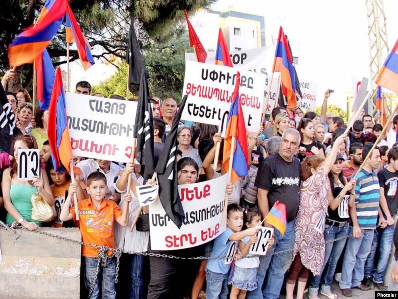 Armenians in Lebanon protest against Armenias rapprochement with Turkey during President Serzh Sarkisians visit to Beirut.