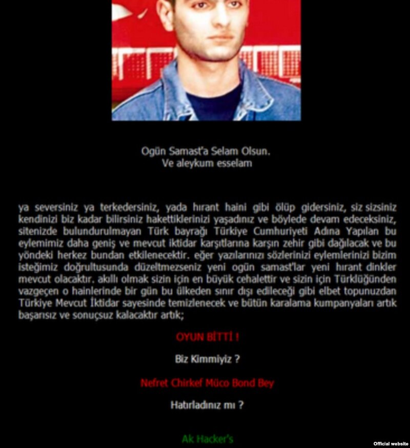 Հաքերները, կոտրելով շաբաթաթերթի կայքէջը, այնտեղ տեղադրել են «Ակոս»-ի խմբագրապետ Հրանտ Դինքին սպանած Օգյուն Սամասթի նկարը, որն ուղեկցող գրության մեջ, մասնավորապես, թերթից պահանջում են «դադարեցնել ընդդիմադիր բովանդակությամբ հոդվածներ տպագրելը» եւ սպառնում, որ «հակառակ դեպքում՝ նոր Օգյուն Սամասթներ եւ նոր Հրանտ Դինքեր կլինեն»: