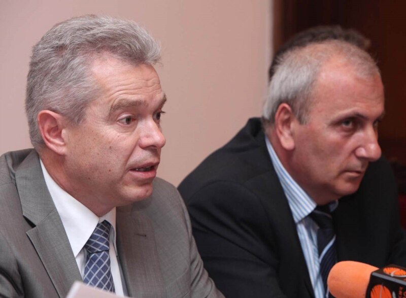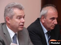 Armenia - Gabor Vamos (R), head of a team of international experts that inspected the Metsamor nuclear plant, at a news conference, 2Jun2011.