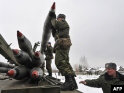 Belarus -- Belarus soldiers load rockets into a Smerch (Tornado), during firing exercises near the village of Golenchitsy, 25Jan2011