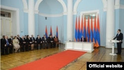 «Պարոն նախագահ, մեզ համար մեծ պատիվ էր Ձեզ հետ աշխատել, եւ ցանկացած քաղաքական-պետական գործչի համար, մեծ պատասխանատվություն եւ երջանկություն է բարձր պաշտոններում ծառայել սեփական ժողովրդին, աշխատել ՀՀ նախագահի հետ: Ես ուզում եմ նշել, որ այս տարիների ընթացքում Ձեր քաղաքական ղեկավարության ներքո մեր թիմը նվիրական ձեւով փորձել է կատարել իր առջեւ Ձեր կողմից դրված բոլոր խնդիրները: Իհարկե, մենք ունեցել ենք դժվար օրեր, ունեցել ենք ոչ միայն հաջողություններ, այլ նաեւ բացթողումներ եւ սխալներ: Պարո՛ն Նախագահ, ապագայի ամենահուսալի խորհրդատուն անցյալն է. Ձեր անցած ուղին, Ձեր փորձը եւ գիտելիքները, Ձեր մարդկային հատկանիշներն այն երաշխիքներն են, որոնք մեզ հույս են ներշնչում, որ մեր պետությունը զարգանալու է, եւ մենք ունենալու ենք նոր վերելքներ եւ նոր հաղթանակներ», - ասաց վարչապետը: