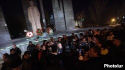 Նրանք ծաղիկներ դրեցին արձանի պատվանդանին ու մոտեցան իրենց սպասող մի քանի տասնյակ աջակիցների: Սասուն Միքայելյանն ասաց, թե որոշել են միտինգային ձևաչափից դուրս հարգանքի տուրք մատուցել մարտի 1-ի զոհերի հիշատակին և գիշերը լուսացնել արձանի մոտ: