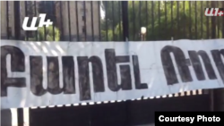 Հիշեցնենք, ԱԺ գլխավոր մուտքի դարպասներին մի քանի րոպեով հայտնված «Բարև Ռոբ» գրությամբ պաստառը պոկելուց հետո ԱԺ անվտանգության ծառայության պետ Կարեն Հայրապետյանը հրել էր «Ա1+» հեռուստաընկերության լրագրող Մարինե Խաչատրյանին, ով այդ պահին նկարահանում էր կատարում, և ցած էր գցել լրագրողի նկարահանող սարքը։