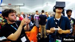 Ամերիկացի սպառողներն ու էլեկտրոնային խաղերի մանրածախ առևտրով զբաղվողները անհամբեր սպասում են «Էլեկտրոնային ժամանց» ցուցահանդեսի բացմանը, որտեղ նրանք կկարողանան փորձարկել վիրտուալ իրականություն ստեղծող նորագույն գլխակալները: