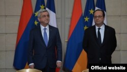 Այսօր Ելիսեյան պալատում կայացել է պաշտոնական այցով Ֆրանսիայի Հանրապետությունում գտնվող Հայաստանի նախագահ Սերժ Սարգսյանի և Ֆրանսիայի նախագահ Ֆրանսուա Օլանդի հանդիպումը: Հայաստանի և Ֆրանսիայի նախագահները բանակցությունների արդյունքներն ամփոփել են ԶԼՄ-ների առջև համատեղ հայտարարություններով: