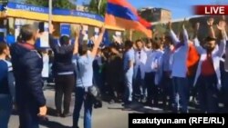 «Ազատ, անկախ ուսանող» կարգախոսով երևանյան բուհերի հարյուրավոր ուսանողներ դասադուլով Աբովյան-Մոսկովյան փողոցների խաչմերուկում են։