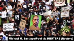 Երեկվա ցույցի կարգախոսն էր` «ծունկդ ետ տար մեր վզից»` ի հիշատակ սևամորթ Ջորջ Ֆլոյդի, ով ամիսներ առաջ շնչահեղձ էր եղել Մինեապոլիսում, երբ սպիտակ ոստիկանը ծունկը մոտ ութ րոպե սեղմել էր նա վզին: