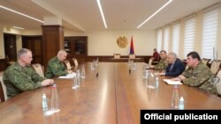 Հայաստանի պաշտպանության նախարար Վաղարշակ Հարությունյանն այսօր ընդունել է Լեռնային Ղարաբաղի հակամարտության գոտում հրադադարի ռեժիմի վերահսկման նպատակով տեղակայված ռուսական խաղաղապահ զորախմբի հրամանատար, գեներալ-լեյտենանտ Ռուստամ Մուրադովին: