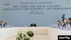 «Մենք հիշելու ենք մեր պատմությունը, սակայն հարևան պետություններից որևէ մեկի, այդ թվում Հայաստանի հանդեպ տարածքային պահանջներ չունենք», - հայտարարել է Ադրբեջանի նախագահը՝ չհերքելով սակայն համաժողովի մասնակիցներից մեկի այն հիշեցումը, թե ինքը պարբերաբար Զանգեզուրը և նույնիսկ Երևանը պատմական ադրբեջանական տարածքներ է անվանում։