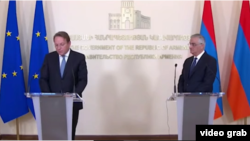 Խոսելով իր այցի հիմնական նպատակից՝ Եվրահանձնաժողովի ընդլայնման և հարևանության քաղաքականության հարցերով հանձնակատարն ասաց՝ տնտեսական և ֆինանսական ներդրումների մեծ ծրագիր են բերել՝ հետքովիդային ճգնաժամը հաղթահարելու համար։