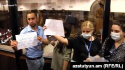 Լրագրողներն օթյակում ակցիա իրականացրին ԱԺ սահմանափակումների դեմ` փորձելով գրավել Փաշինյանի ուշադրությունը