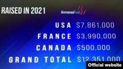 «Որից 7,8 միլիոնը և մի քիչ ավելը Միացյալ Նահանգներում։ Ֆրանսիան էլի աննախադեպ արդյունք ցույց տվեց, խոսքը գնում է մոտավորապես 4 միլիոն դոլարի մասին, որի մի մասը կտակներ էին։ Եվ Կանադան՝ Տորոնտոյի մեր տեղական մարմինը 500 հազար դոլար է հայտարարել», - ասաց հիմնադրամի գործադիր տնօրեն Հայկակ Արշամյանը։