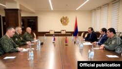 Հայաստանի պաշտպանության նախարար Սուրեն Պապիկյանն այսօր հանդիպել է Ռուսաստանի Հարավային ռազմական օկրուգի հրամանատարի տեղակալ, գեներալ-լեյտենանտ Ռուստամ Մուրադովի և Արցախում ռուսական խաղաղապահ ուժերի նորանշանակ հրամանատար, գեներալ-մայոր Անդրեյ Վոլկովին: