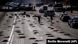 «Ազատության» Current time հեռուստանախգծի Կիևի թղթակիցը տեղից հաղորդել է. «Այսօր իմ աչքով առաջին անգամ տեսա վառված դիակներ, սպանվածներ հենց իմ տան մոտ։ Պարզվում է իմ տան մոտ՝ 300-400 մետր հեռավորության վրա փոխհրաձգություն է տեղի ունեցել։ Ահա մենք հիմա տեսնում ենք տարածքային պաշտպանության ավտոբուսը, որի մոտ քաղաքացիական հագուստով անձի դիակ կա։ Ավտոբուսից քիչ հեռու հրդեհված ռազմական տեխնիկա է, կարծում ենք, որ մահացածը ուկրաինական զինված ուժերի բեռնատարի վարորդն է»։