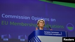 Եվրահանձնաժողովն առաջարկում է Ուկրաինային ԵՄ թեկնածուի կարգավիճակ շնորհել։ Այս մասին քիչ առաջ Բրյուսելում կայացած ասուլիսի ժամանակ հայտարարել է Եվրահանձնաժողովի նախագահ Ուրսուլա ֆոն դե Լայենը։
