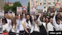 Ավարտական միջոցառումների լուսանկարներում անուրախ տեսարաններ են՝ զոհվածների լուսանկարները պարզած շրջանավարտներ, վերապրածներ - գրությամբ շրջանավարտներ: