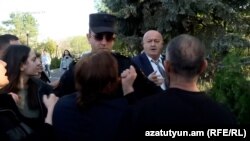 Քիչ առաջ միջադեպ տեղի ունեցավ, երբ Ազգային ժողովի իշխող «Քաղաքացիական պայմանագիր» խմբակցության պատգամավորներ Հովիկ Աղազարյանն ու Հակոբ Ասլանյանը փորձեցին պանթեոն մտնել։