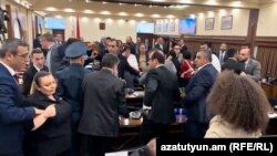 Հիմնականում խաղաղ մթնոլորտում ընթացող Երևանի ավագանու նիստն օրվա երկրորդ կեսին ընդհատվեց ավագանու իշխանական և ընդդիմադիր երկու անդամների ծեծկռտուքի պատճառով։