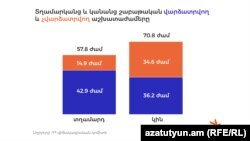 «Արմստատ»-ի վերջին տվյալներով՝ կանայք Հայաստանում ավելի շատ ժամեր են աշխատում, քան՝ տղամարդիկ, կանանց միջինը շաբաթական 71 ժամ է, տղամարդկանց միջինը՝ 58. խոսքը և՛ վարձատրվող, և՛ չվարձատրվող աշխատանքի ժամերի մասին է՝ տան գործերից մինչև երեխաների խնամք: