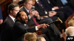 Տեխասից դեմոկրատ կոնգրեսական Ալ Գրինը նույնիսկ ընդհատեց Թրամփի ելույթը, երբ հրաժարվեց նստել, ինչից հետո անվտանգությունը նրան դուրս հրավիրեց: Ավելի ուշ պարզաբանեց՝ այդ քայլով նախագահին փորձում էր հասկացնել, որ իրավասություն չունի կրճատելու ցածր եկամուտներ ունեցողների համար նախատեսված առողջության ապահովագրության Medicaid պետական ծրագիրը: