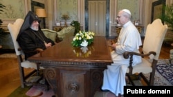 Հայաստանյայց Առաքելական Սուրբ Եկեղեցու և Հռոմի Կաթոլիկ Եկեղեցու Հովվապետերը առանձնազրույցի ընթացքում անդրադարձել են աշխարհում տեղ գտնող արհավիրքներին ու մտահոգիչ զարգացումներին, Հայաստանի և հայ ժողովրդի առջև ծառացած մարտահրավերներին ու դիմագրավվող փորձություններին։