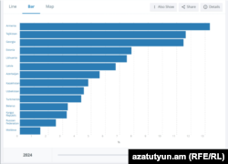 Այս վիճակագրությունն էլ իր հերթին վկայում է, որ 2007 թվականից հետո մեծ փոփոխություններ առանձնապես չկան, վերջին տվյալներով՝ այդ պայմաններում է ապրում 60 հազար մարդ: Աղքատության վերին շեմն օրական 8.3 դոլարն է, այդ հաշվարկով Հայաստանի վիճակագրությունը վատագույններից է հետխորհրդային երկրների շարքում, բնակչության ավելի քան 56 տոկոսը, 2023-ի տվյալներով, աղքատության մեջ է ապրում: Ավելի վատ ցուցանիշ ունի միայն Ղրղզստանը: Ադրբեջանը վաղուց վիճակագրությամբ չի կիսվում, Ուկրաինայի վերաբերյալ տվյալներն էլ 2020-ից հետո չեն թարմացվել: