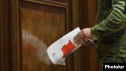 Իշխանության և ընդդիմության միջև վիճաբանությունը դեռ չավարտված խորհրդարանի անվտանգության աշխատակիցը պոկեց ամբիոնին փակցված Հայաստանի և Արցախի միասնական քարտեզը։
