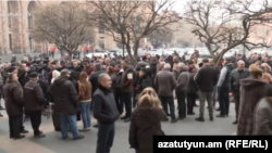 Ռոբերտ Դավթյանը այսօր Գնունու տոնավաճառում օգտագործված էլեկտրական ապրանքների իր վաճառքի կետը թողել, հասել էր կառավարության շենքի մոտ՝ պահանջելու կասեցնել հարկային փոփոխությունը, որ ուժի մեջ է հունվարի մեկից: Շրջանառության հարկը 5 -ի փոխարեն 10 տոկոս դարձնելը՝ իր գործին շատ է հարվածել: