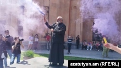 ՀՀ ոտիկանապետ Արամ Հովհաննիսյանը լրագրողների հետ կարճ ճեպազրույցում հայտարարեց՝ «տերտերին ասեք քաղաքացիներին հորդորի կարգը պահեն»:
