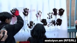 Ակցիայի մասնակիցները արյունոտ ձեռքերի հետքեր թողեցին պաստառներին։